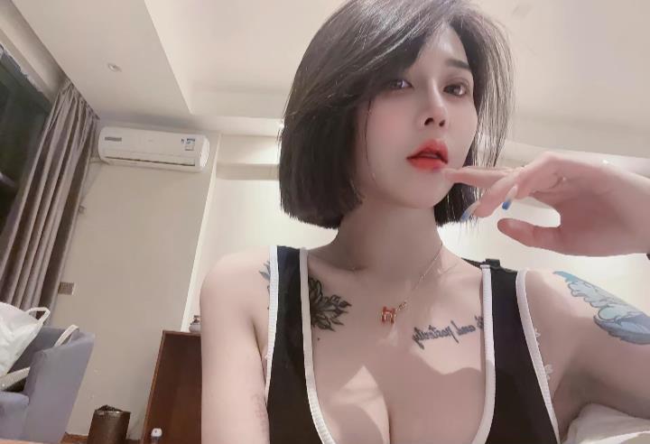青秀短发纹身妹
